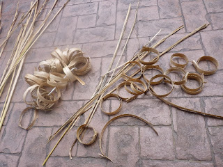 月桃這樣的材料在山上俯拾皆是,但是卻必須有較長時間的處理程序,